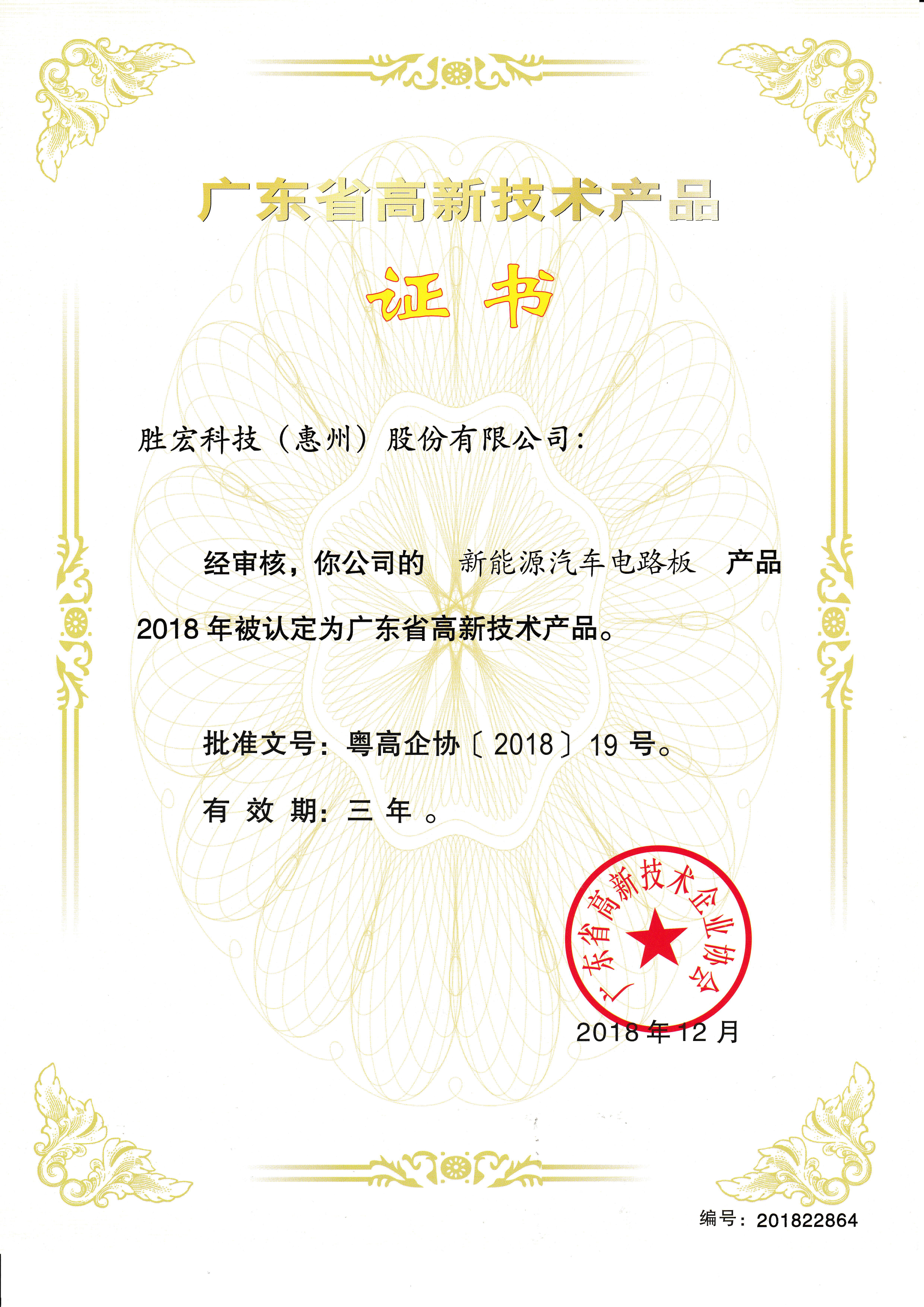 “新能源汽車電路板”高新技術(shù)產(chǎn)品證書