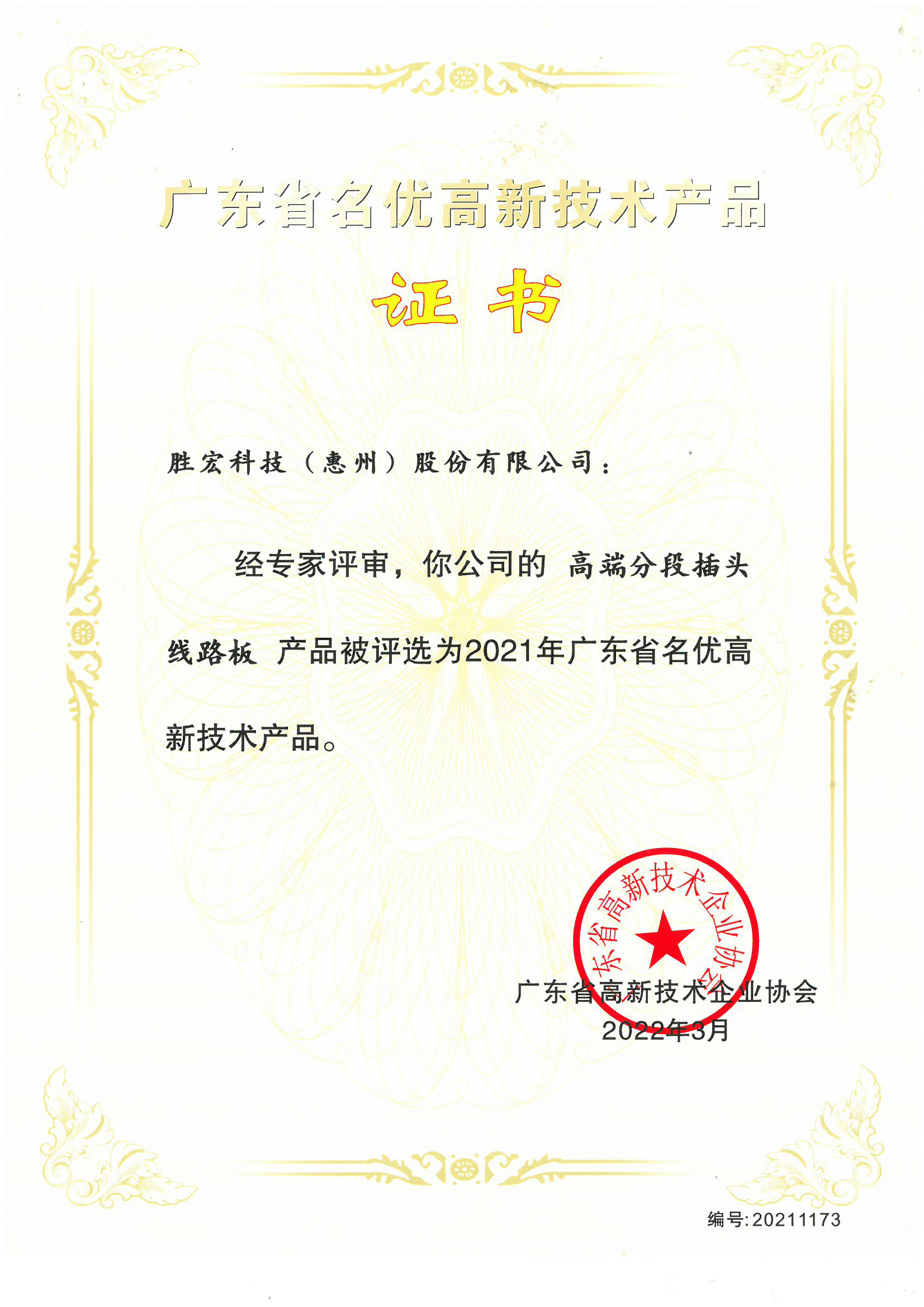 “高端分段插頭線路板”名優(yōu)高新技術(shù)產(chǎn)品證書