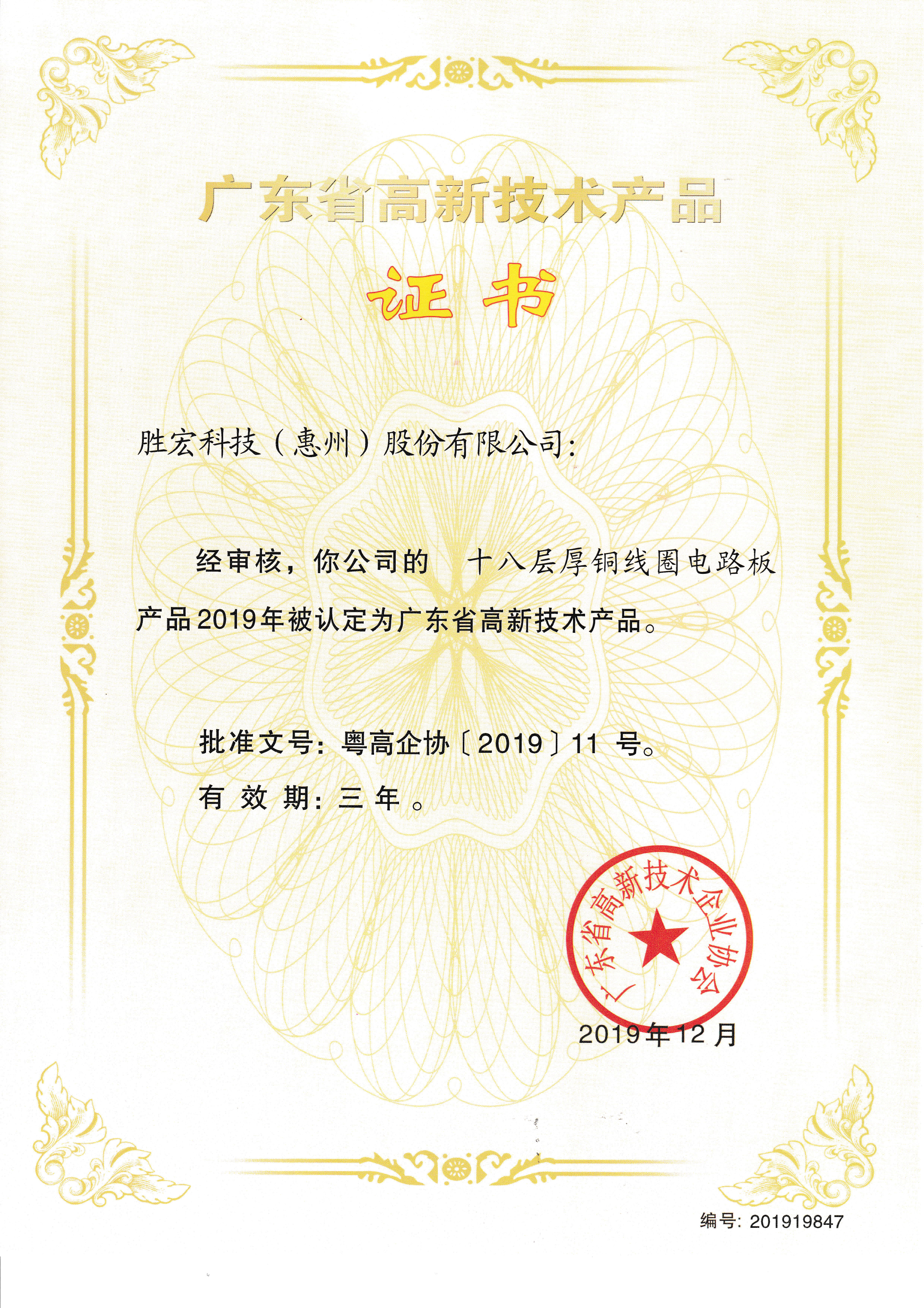 “十八層厚銅線圈電路板”高新技術(shù)產(chǎn)品證書