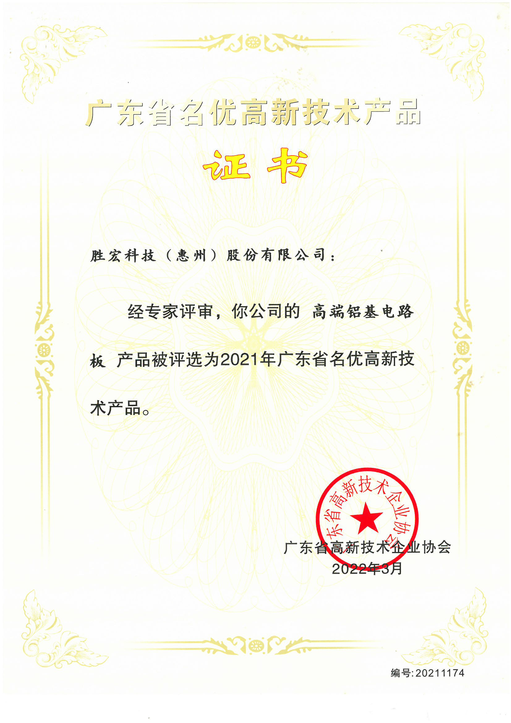 “高端鋁基電路板”名優(yōu)高新技術(shù)產(chǎn)品證書