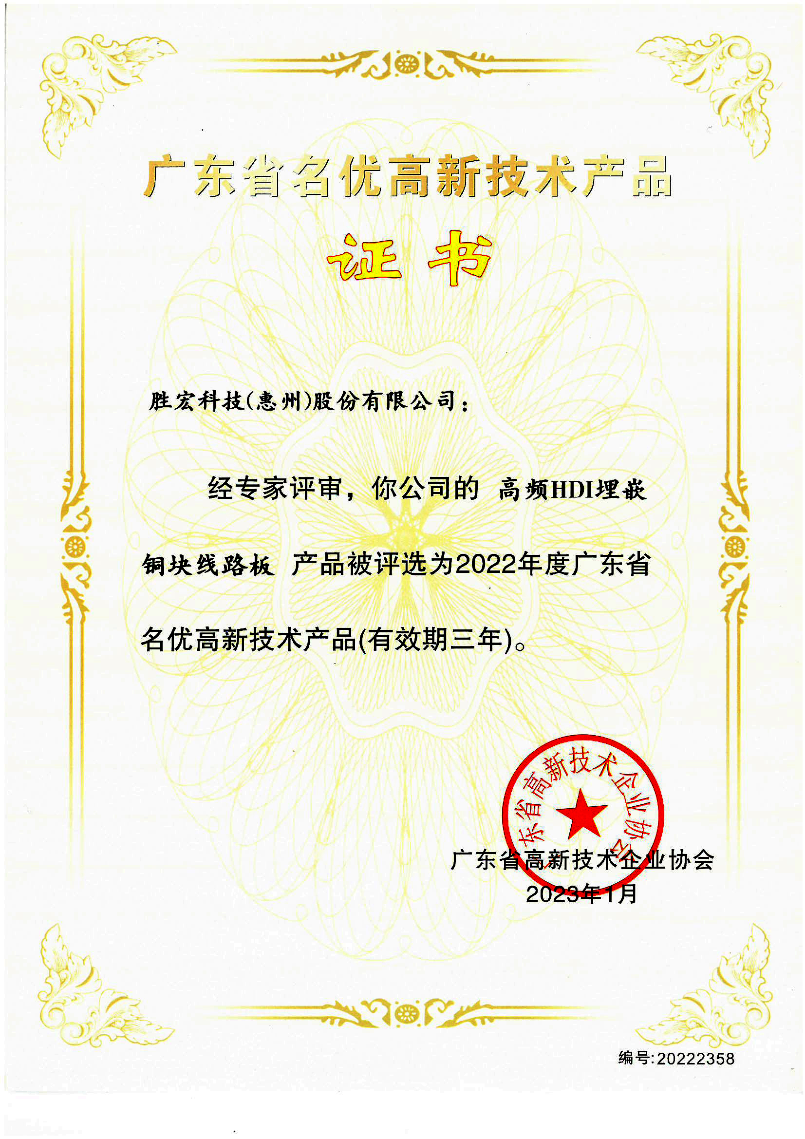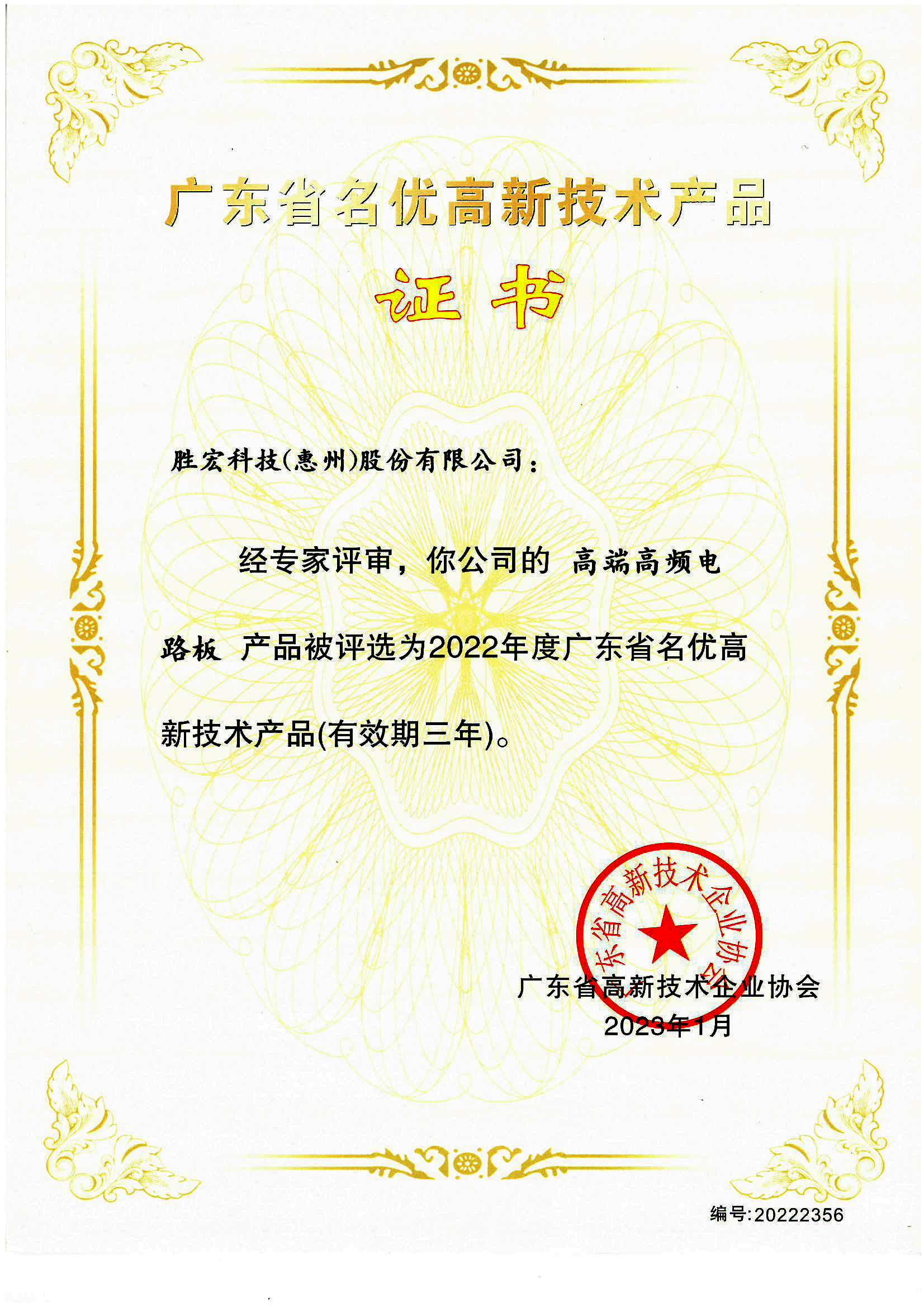“高端高頻電路板”名優(yōu)高新技術(shù)產(chǎn)品證書